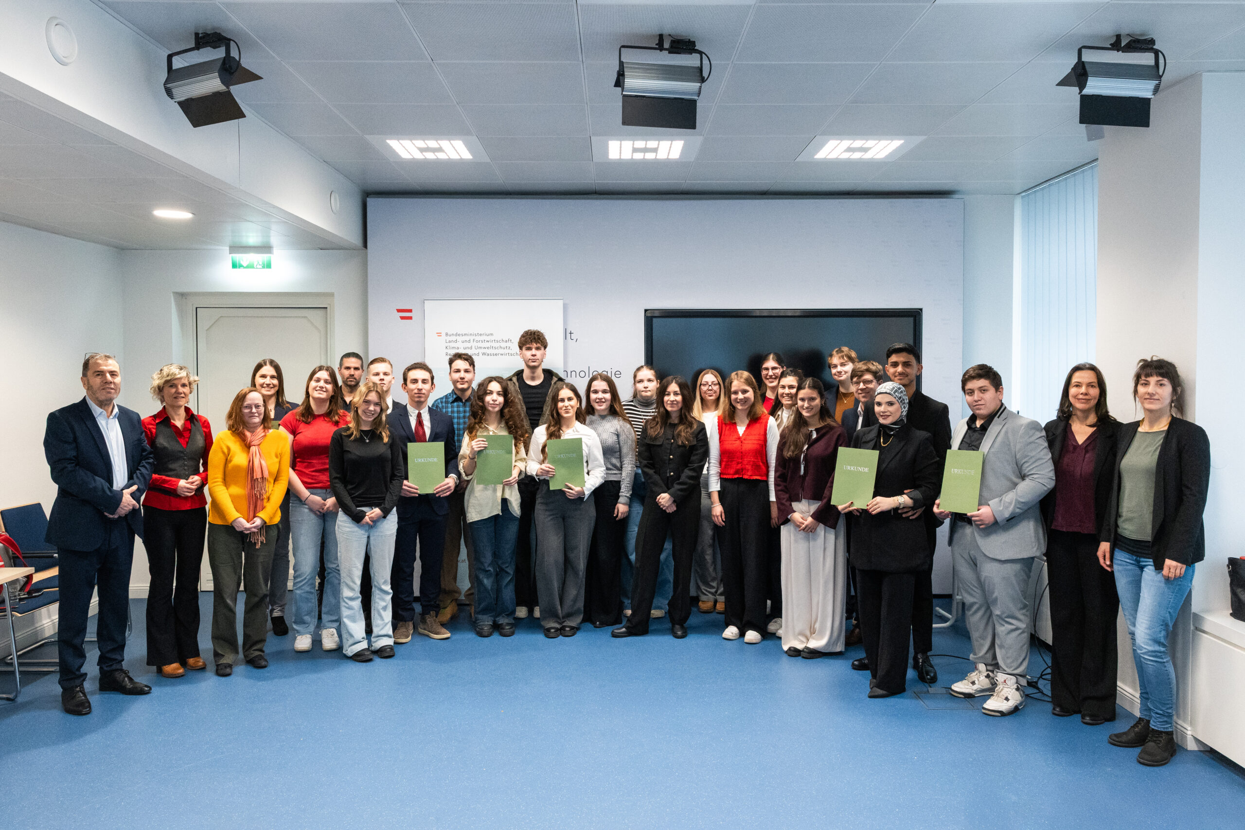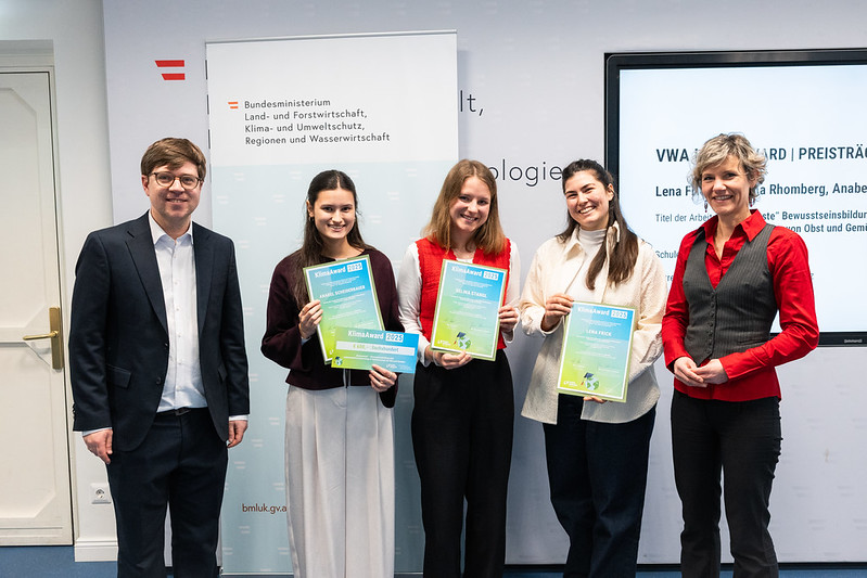 Im Festsaal Bundesministeriums in der Stubenbastei wurden am 29. Jänner 2026 engagierte junge Klimaakteur:innen aus ganz Österreich geehrt. Gemeinsam mit dem Klimabündnis Österreich wurden die Preisträger:innen der Wettbewerbe „Frame Your Mission“ und „VWA KlimaAward“ 2025 ausgezeichnet und damit das beeindruckende Engagement der jungen Generation für Klimaschutz und Nachhaltigkeit ins Rampenlicht gerückt. Die Gewinnerinnen des VWA KlimaAwards dürfen sich jeweils über ein Preisgeld von 300 Euro bzw. 600 Euro für Gruppenarbeiten freuen.